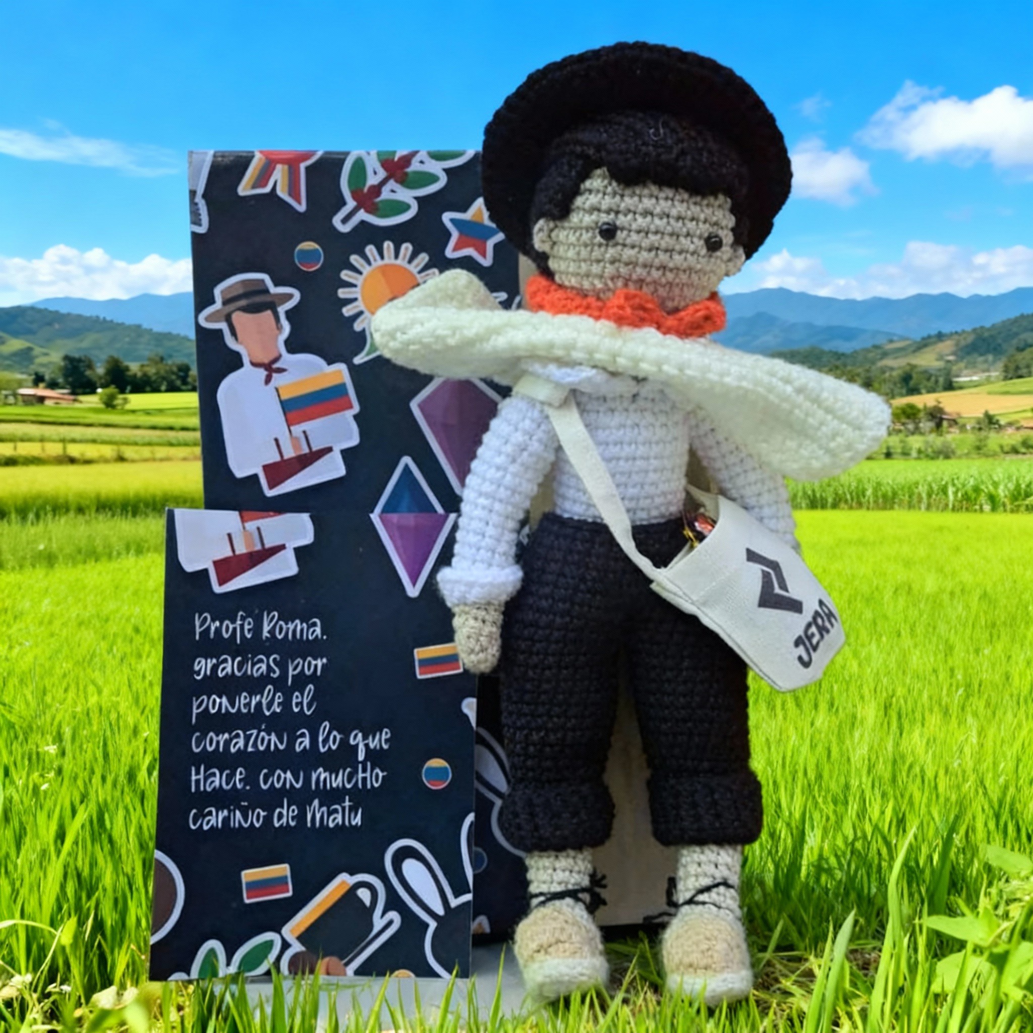 ¡Descubre la magia de tener un amigurumi personalizado que te represente a ti o a alguien especial! Nuestros amigurumis están tejidos a mano con hilo macramé de alta calidad y pueden ser personalizados con cualquier traje o diseño que desees. En este caso, ofrecemos trajes típicos colombianos, pero podemos crear cualquier diseño que tengas en mente. Simplemente envíanos una foto y nosotros nos encargamos de crear un amigurumi único y especial.